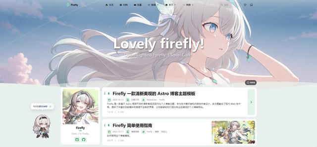 Firefly is a fresh and visually appealing Astro blog theme template, featuring the lovely Firefly from Honkai: Star Rail as its mascot!